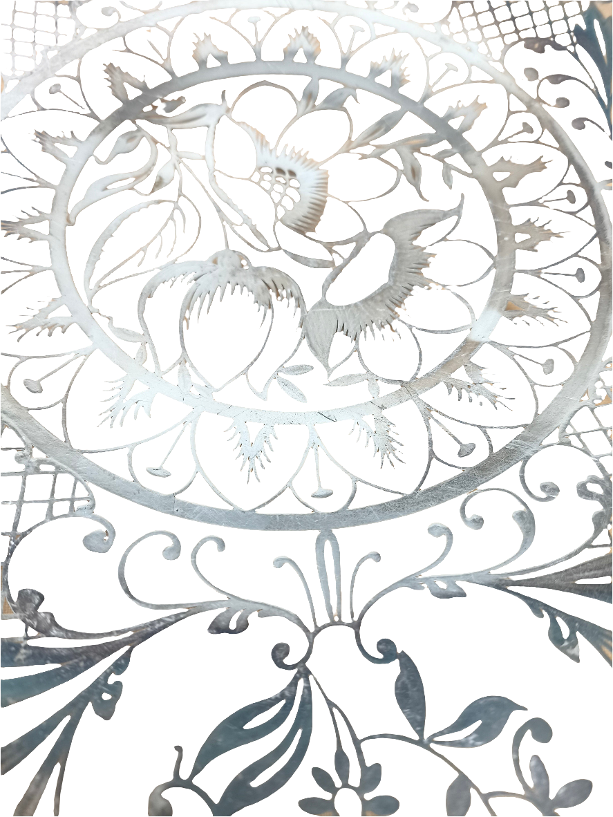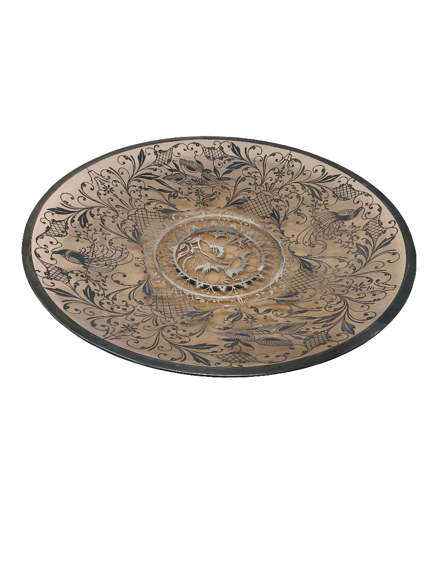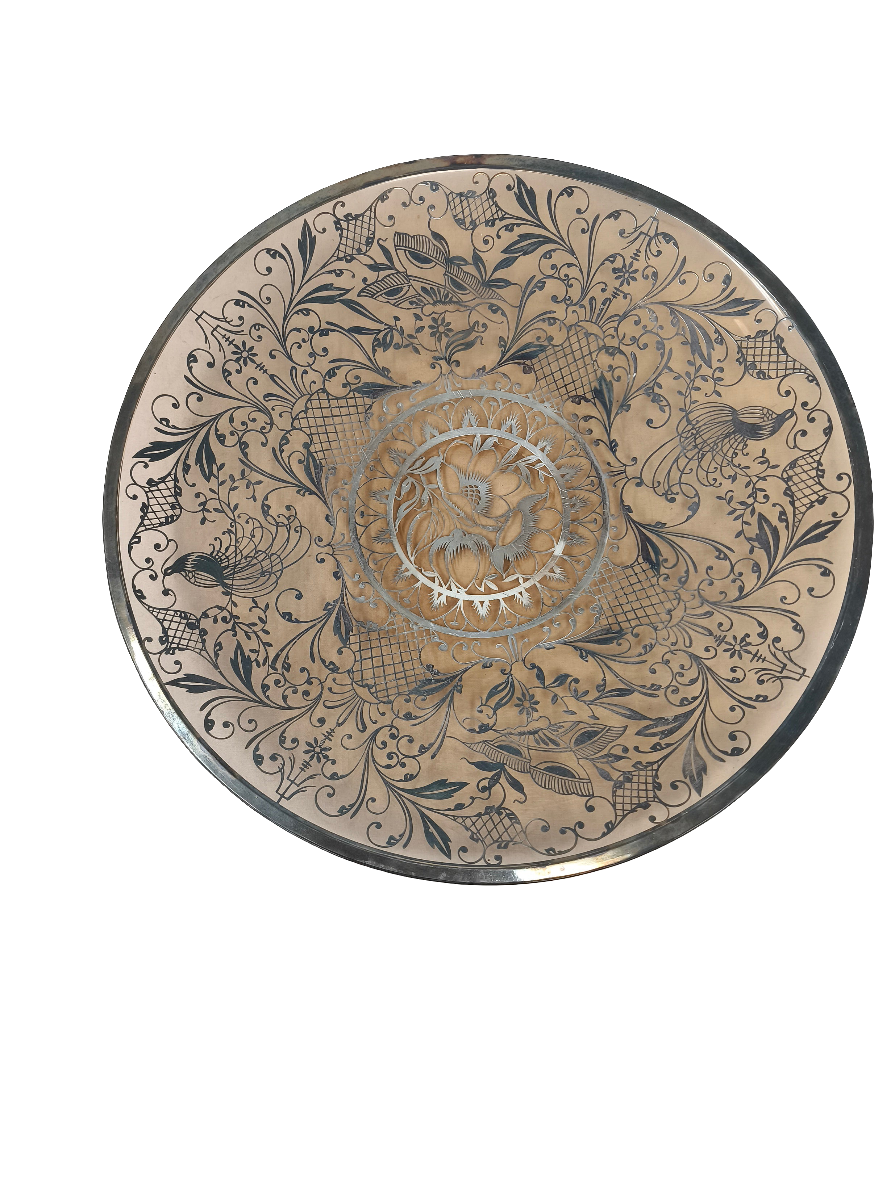 Porta Frutta Centro Tavola Vetro Con Rilievi Argentei Bellissimo ø 37cm
